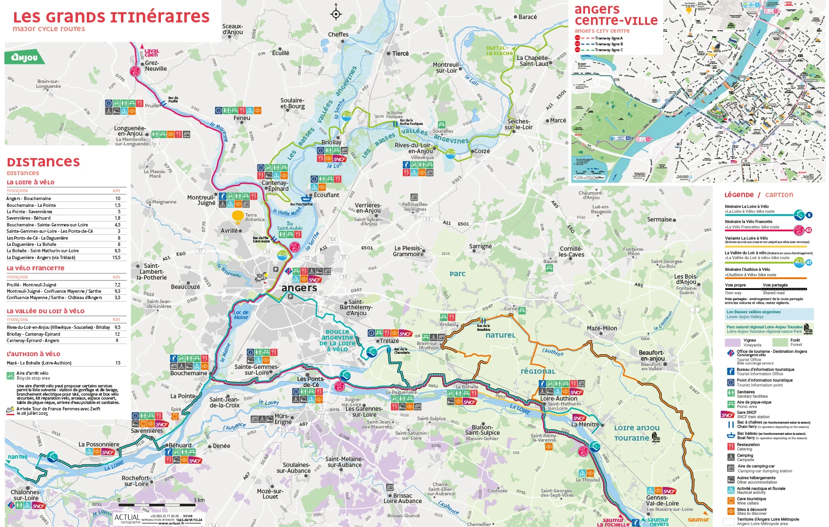Cette fin de tracé vous emmènera en direction des Ponts de Cé ou vous traverserez la Loire pour rejoindre Bouchemaine. Un dernier petit effort de 10km en passant au pied du Château d’Angers et vous serez de retour au point de départ. Cette randonnée demande un minimum de pratique mais est très accessible techniquement. Comptez au minimum 4 heures pour un bon rouleur et 6 heures en mode cool.